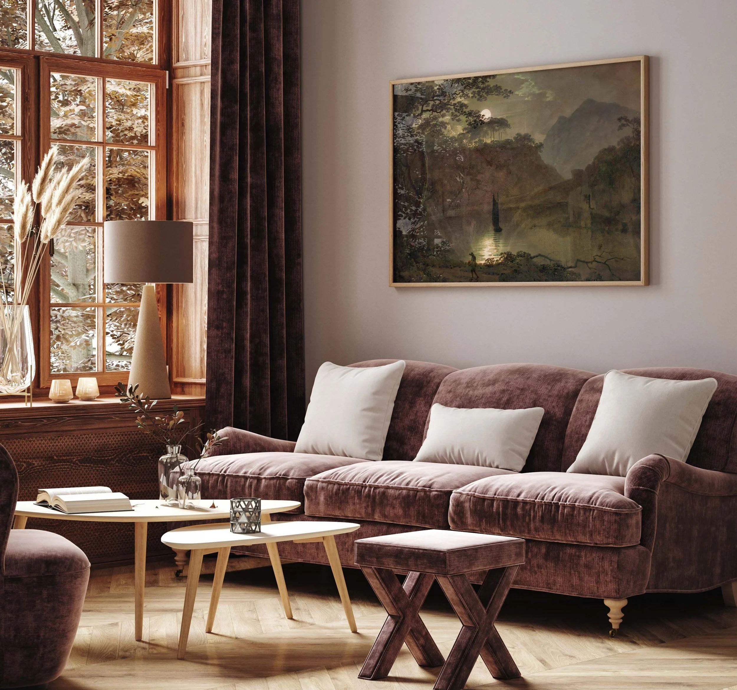 This print is inspired by A Lake by Moonlight by Joseph Wright of Derby (1780s). Printed with archival quality pigment inks on premium, acid‑free paper for long‑lasting colour and detail. Artwork is thoughtfully cropped to fit our standard formats while keeping key details and a balanced composition.